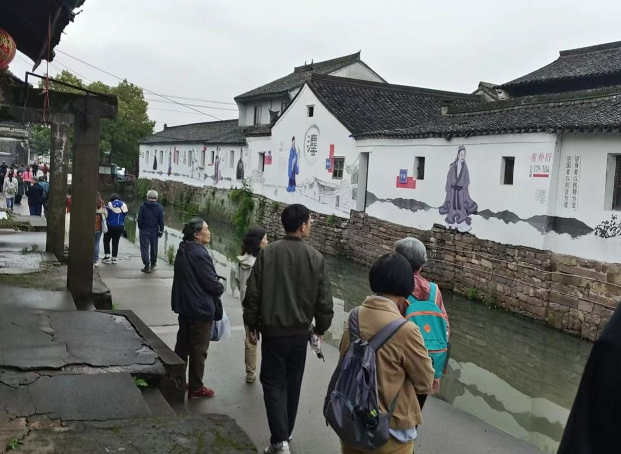 行程的第一站是走马塘村。走马塘位于鄞州区姜山镇,被称为“中国进士第一村”,从北宋到明代,出过76名进士,有“四明古郡,文献之邦,江山之胜,水陆之饶”之美誉。飞檐高翘的古建筑,随处可见的祠堂影壁、石刻花窗,无不彰显村子的悠久历史。离退休的教职工们慢悠悠地闲逛着,路边是清澈的湖水,仿佛置身于美丽的画卷之中。